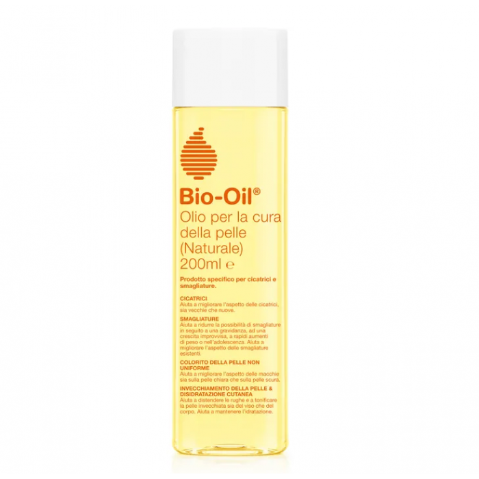 Bio-Oil Olio per la cura della pelle (Naturale) è una miscela di 14 oli naturali, particolarmente ricchi di acidi grassi essenziali (ad es. acido Linoleico e acido Linolenico) fondamentali per il ripristino ed il mantenimento della corretta fisiologia cutanea. Tutti gli ingredienti usati nella formula sono naturali, come da certificazione ISO 16128. Non contiene profumo, coloranti, parabeni, conservanti.