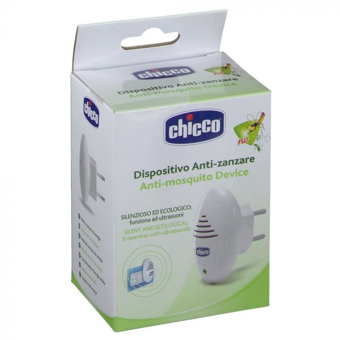 Il dispositivo antizanzare Chicco agisce tramite ultrasuoni che infastidiscono le zanzare, ma che non provocano alcun effetto indesiderato alle persone. Grazie al suo formato ridotto può essere inserito ovunque. Poichè assolutamente ecologico e non emana sostanze chimiche, non è necessario arieggiare i locali dopo il suo utilizzo. Ridotto consumo di energia. Per le sue caratteristiche tecnico-funzionali le prestazioni del prodotto potrebbero risultare ridotte od inefficaci con particolari tipi di zanzare o a diverse latitudini.