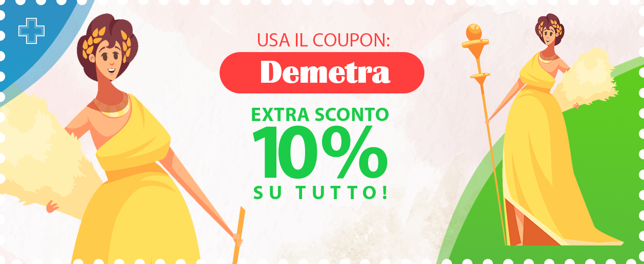 Usa il coupon DEMETRA per FARE ACQUISTI SU TUTTO IL CATALOGO CON UN EXTRA SCONTO 10 o ACQUISTA I PRODOTTI CHE ABBIAMO PENSATO PER TE.