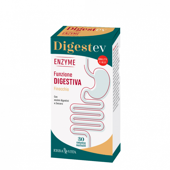 Digest EV Enzyme è un integratore alimentare utile per la funzione digestiva grazie alla presenza di Finocchio e Camomilla, che contribuiscono anche alla regolare motilità gastrointestinale.