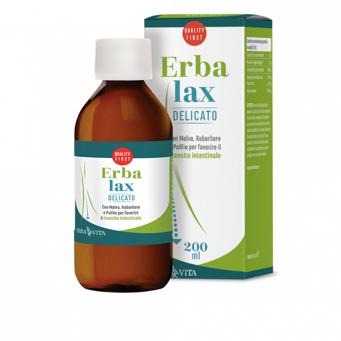 Erbalax Delicato Fluido è un integratore alimentare utile a educare la regolarità intestinale con la sua composizione a base di estratti vegetali e succhi di Prugna e Tamarindo, Malva, Rabarbaro e Psillio.