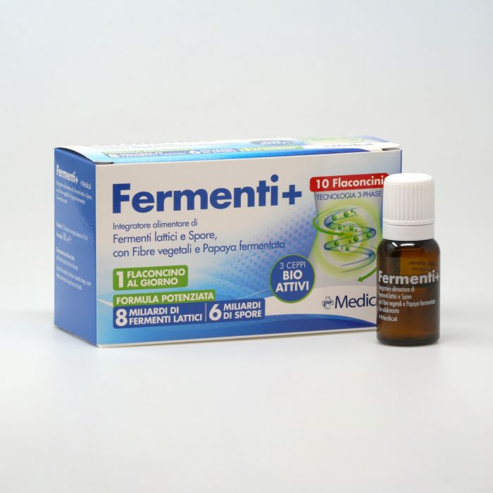 Fermenti+ 8 miliardi è un integratore alimentare con 8 miliardi di fermenti lattici e 6 miliardi di spore (3 ceppi selezionati), FOS e papaya fermentata. Fermenti lattici e FOS favoriscono l’equilibrio della flora intestinale.