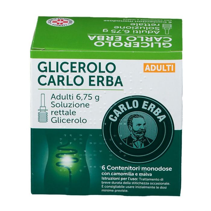 Glicerolo Carlo Erba Adulti 6,75 G Soluzione Rettale con Camomilla e Malva 6 Contenitori Monodose