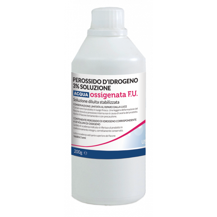 Soluzione diluita stabilizzata, disinfettante per ferite ed ulcere. La sua azione disinfettante è dovuta ad un duplice meccanismo: da una parte agisce come ossidante, dall’altra la formazione di ossigeno pulisce meccanicamente la ferita eliminando eventuali batteri presenti al suo interno.