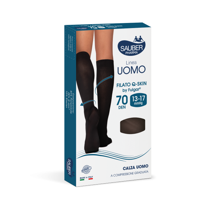 • 70 DEN 13-17 mmHg - massaggio medio tonificante: svolge un’azione tonificante delle gambe e preventiva delle varici, utile quando appaiono i primi “capillari”. Attenua la sensazione di gambe pesanti e sofferenti, riduce i gonfiori di media entità e i formicolii alle gambe.