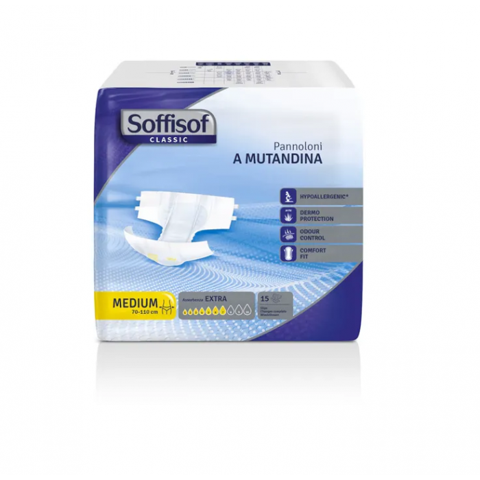 SOFFISOF CLASSIC PANNOLONE A MUTANDINA INCONTINENZA EXTRA TAGLIA MEDIA 15 PEZZI