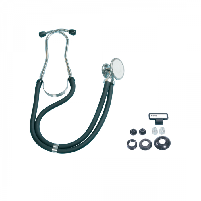 Di tipo professionale con doppio padiglione cromato pesante per auscultazione cardiaca e polmonare (Ø 45 e 32 mm)
