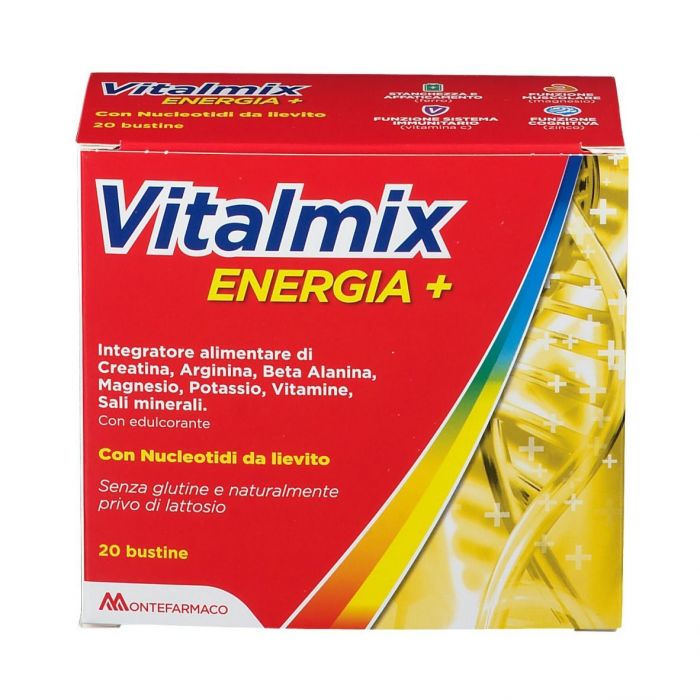 Integratore alimentare con arginina e cretina utile in tutti i casi di ridotto apporto con la dieta. La formulazione di Vitalmix Energia + contiene: